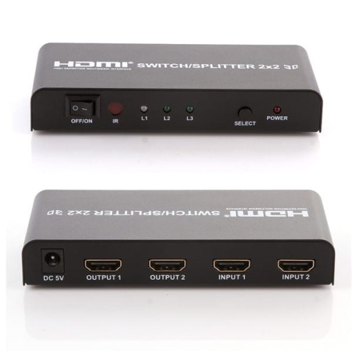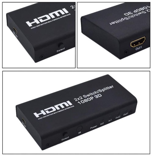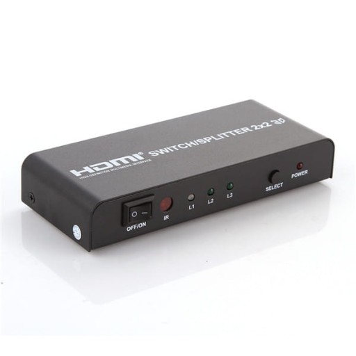 Przełącznik potrafi powielić nadawany sygnał z wybranego gniazda HDMI na dwa ekrany. Splitter bardzo dobrze sprawdzi się na pokazach, podczas prezentacji oraz z systemami audio wizualnymi w sklepach. Obraz z odtwarzaczy, komputerów, dekodera i wielu innych urządzeń wyposażonych w wyjście HDMI może być przełączany dołączonym do zestawu pilotem. W zestawie znajduje się Switch, pilot z dwoma przyciskami, ładowarka i instrukcja obsługi. Produkt nie wymaga instalacji, działa na zasadzie Plug&Play.