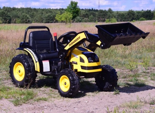 Traktor HL-389 na dużych kołach z łyżką, napędzany dwoma mocnymi silnikami 45 W z całą pewności zainteresuje młodego wielbiciela traktorów.
