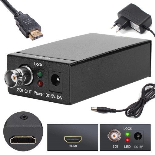 Konwerter z cyfrowego gniazda HDMI do cyfrowego gniazda SDI o przepustowości 2.970 Gbit/s z obsługą rozdzielczości 1080p. Urządzenie zmienia format sygnału z HDMI na sygnał SD-SDI/HD-SDI/3G-SDI i zapewnia bezstratny przesył na duże odległości. Przejściówka zapewnia wyświartlanie tresci z urządzeń cyfrowych jak odtwarzacz filmów, dekoder telewizyjny, kamera, laptop na ekranach i monitorach SDI. Adapter nie wymaga sterowników i działa na zasadzie Plug&Play.