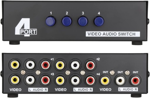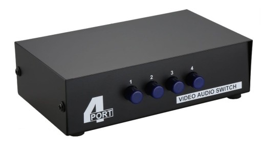 Switch z 4 zestawów gniazd AV 3x Chinch RCA do wyjścia 3x Chinch RCA. Switch posiada 4 manualne przyciski do wyboru sygnału z aktywnych gniazd. Do switcha można podłączyć odtwarzacz DVD, odtwarzacz kaset wideo, dekoder telewizyjny, konsolę oraz wiele innych urządzeń obsługujących połączenie 3x AV Chinch RCA. Urządzenie jest bardzo proste w użyciu oraz nie wymaga zewnętrznego zasilania. Czarna metalowa obudowa jest solidna i dyskretna. Urządzenie nie wymaga instalacji, działa Plug&Play - wystarczy podłączyć odpowiednie kable.