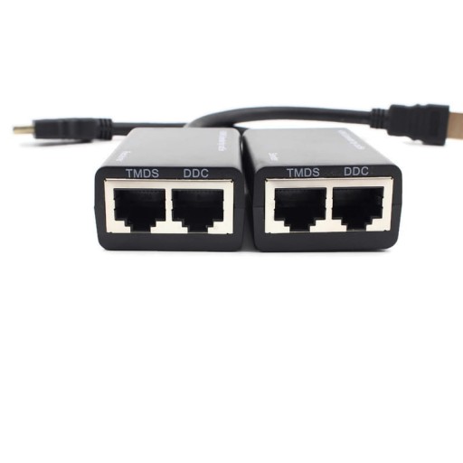 Extender / przedłużacz obrazu i dźwięku HDMI do 30m za pomocą kabla sieciowego / skrętki RJ45. Prosty i łatwy w obsłudze przedłużacz sygnału wysokiej rozdzielczości 1080p do połączenia ze sobą telewizora i kina domowego / komputera PC / laptopa / dekodera i wielu innych urządzeń. Do połączenia potrzebne są tylko dwa kable sieciowe CAT5e/6 (skrętka RJ45). Mały rozmiar odbiornika i nadajnika sprawia, że łatwo je ukryć. Zasilanie modułów odbywa się bezpośrednio z gniazda HDMI i ma potrzeby stosowania zasilania zewnętrznego.