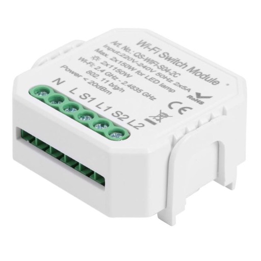 2-kanałowy inteligentny przełącznik dopuszkowy Tuya QS-WIFI-S04-2C z WiFi