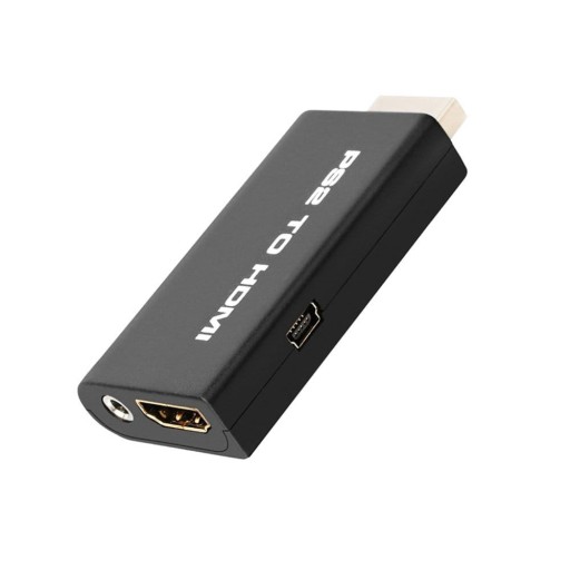 Adapter z wtyczki AV PS2 do gniazda HDMI i jack 3,5mm. Obraz i dźwięk z konsoli przesyłany jest do gniazda HDMI w cyfrowej postaci oraz analogowo do gniazda jack 3,5mm. Jest to wydajne rozwiązanie, które umożliwia podłączenie monitora lub telewizora z gniazdem HDMI oraz wykorzystanie gniazda jack 3,5mm do podłączenia systemu audio lub słuchawek. Upscaling wykorzystywany przez konwerter umożliwia rozgrywkę na nowoczesnych ekranach w maksymalnej rozdzielczości HDTV. Obsługiwane są wszystkie tryby wyświetlania jakie posiada konsola PS2: 480i / 480p / 576i i konwertowane do HDTV. Przesyłane obrazy przesyłane w czasie rzeczywistym są żywe i bez żadnych opóźnień.