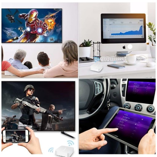 Podłącz MiraScreen X7 za pomocą gniazda HDMI lub 3xRCA Chinch do swojego radia samochodowego. Urządzenie umożliwia wyświetlanie na ekranie środkowej konsoli samochodowej podglądu nawigacji, teledysków, filmów, gier oraz pozwala uzyskać pełen podgląd aplikacji systemowych ze smartfona, tabletu lub laptopa. Wystarczy podpiąć się za pomocą kabla HDMI lub RCA Chinch do gniazda AV samochodowego systemu multimedialnego. Dzięki czemu nie trzeba będzie używać uchwytów do telefonu umieszczanych na szybie lub desce rozdzielczej. Telefon lub inne urządzenie łączy się z MiraScreen X7 za pomocą WiFi. Obraz i media z telefonu klonowane są na wyświetlacz samochodowy. Obsługa wyświetlanych mediów odbywa się za pomocą smartfona. Wyśmienicie sprawdza się w podróży z dziećmi, które mają ochotę posłuchać ulubionych piosenek z YouTube lub obejrzeć bajkę. Używając smartfona z możliwością dzielenia ekranu na pół w jednej części ekranu można uruchomić nawigację, a w drugiej wyżej wspomnianą muzykę lub bajki. Przystawki MiraScreen X7 można również używać w warunkach domowych z telewizorami wyposażonymi w gniazdo HDMI lub AV. Dzięki takiemu połączeniu telewizor zyskuje możliwość przesyłania ekranu z wielu kompatybilnych urządzeń za pomocą WiFi.