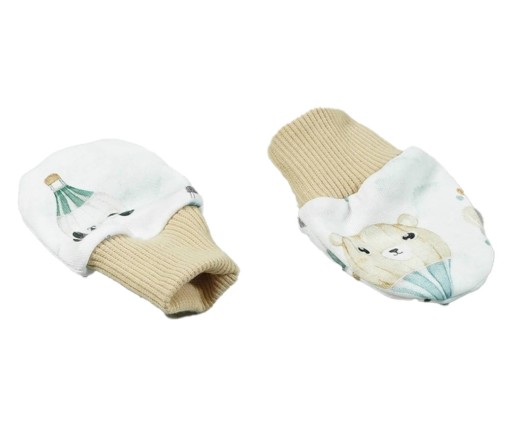 Miękkie łapki chronią buzię maluszka przed zadrapaniem, podczas wykonywania nieskoordynowanych ruchów w pierwszych tygodniach życia dziecka.