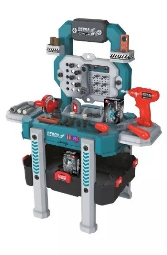 Wyglądem i funkcją przypomina prawdziwy stół warsztatowy wraz z całym niezbędnym oprzyrządowaniem, co pozwala na rozwinięcie się u dziecka pasji, poznanie świata narzędzi oraz nauki zasad ich działania, już od najmłodszych lat. Mnogość elementów sprawia, że zabawa w małego majsterkowicza może stać się niezwykle kreatywna i na pewno szybko się dziecku nie znudzi.