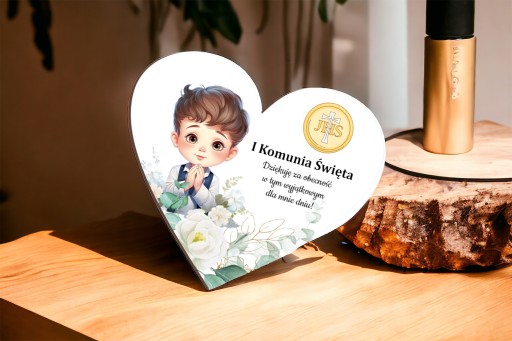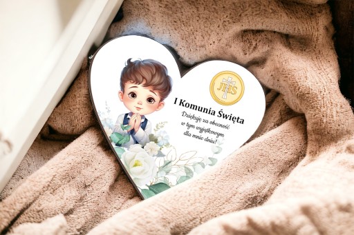 Magnes wykonany jest z wysokiej jakości materiałów i ma kształt serduszka. Na magnesie znajduje się piękny wzór komunijny, nawiązujący do duchowej natury tego sakramentu.