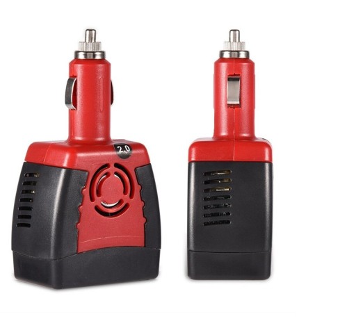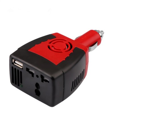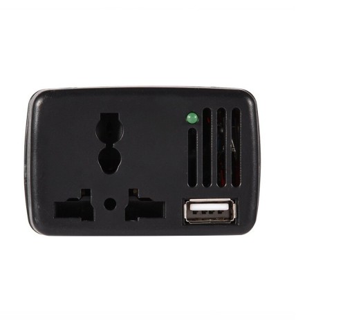 Przetwornica napięcia z gniazda samochodowej zapalniczki konwertująca prąd o napięciu 12V na 220V. Produkt posiada moc 150W, która jest wystarczająca do zasilania sprzętu elektronicznego podczas pracy w trasie oraz podróży. Urządzenie posiada gniazdo USB za pomocą którego można naładować podręczną elektronikę, jak smartfon lub tablet. Konwerter posiada ochronę przed niskim (10-11V) oraz wysokim (15-16V) napięciem.