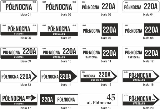 W miejscowościach, które posiadają ulice, place lub osiedla, na tabliczkach umieszcza się zarówno numer porządkowy, jak i nazwę odpowiedniej ulicy, placu lub osiedla. Natomiast w miejscowościach, które nie posiadają ulic, placów ani osiedli, na tabliczkach umieszcza się jedynie numer porządkowy oraz nazwę samej miejscowości.