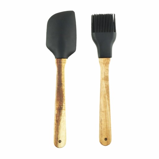 - wałek do ciasta (ruchomy) o wymiarach 41 x 5,3 cm, pokryty czarnym silikonem z drewnianymi rączkami