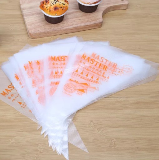 Jednorazowe woreczki foliowe do wykonywania dekoracji z kremów i mas cukierniczych.