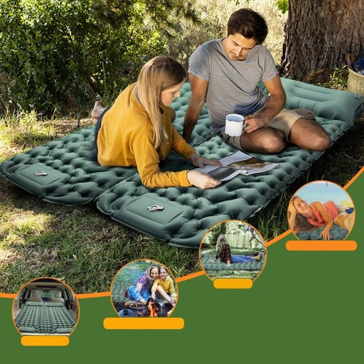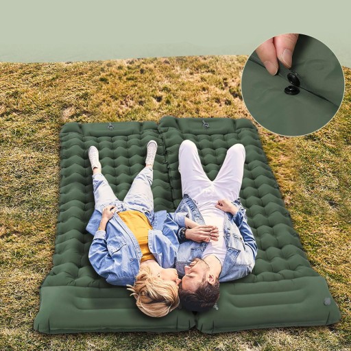 ⛺⛺⛺ 【Splicable Design with Side Button】 Materac kempingowy ma przyciski po dwóch stronach, które można połączyć w dwie lub więcej podkładek powietrznych do spania.
