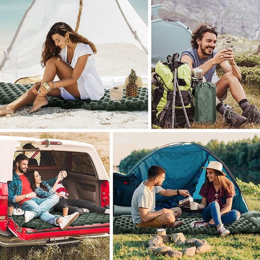 👍👍👍 【Wielofunkcyjny materac powietrzny】 Kompaktowa mata do spania idealnie pasuje do namiotu, krzesła lub hamaku, pod/wewnątrz śpiworu, nadaje się również do użytku domowego i biurowego, możesz prowadzić przytulne życie wypoczynkowe zarówno wewnątrz, jak i na zewnątrz.