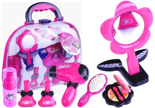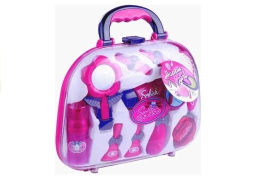 Piękna, błyszcząca się walizka dla dziewczynki służąca do przewożenia profesjonalnego sprzętu fryzjersko-kosmetycznego: suszarka, szczotka, czy też zestaw cieni do powiek to niezbędne akcesoria potrzebne do uczesania fantazyjnych fryzur oraz wykonania artystycznych makijaży.