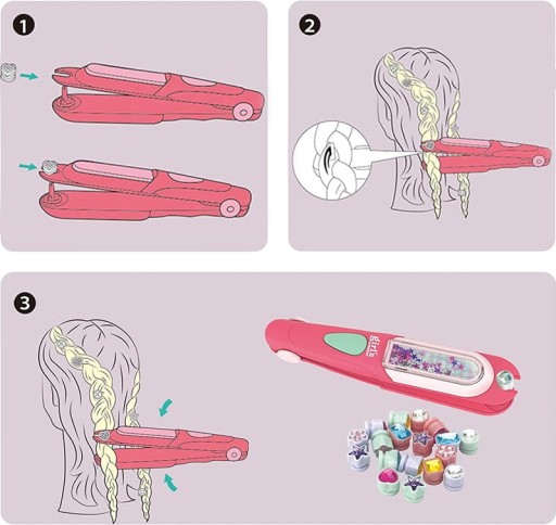 Za pomocą aplikatora można pięknie ozdobić fryzurę małej dziewczynki. Zaplatanie koralików wykonuje się ręcznie przy pomocy specjalnego aplikatora. Wystarczy załadować do urządzenia wybrany koralik i zacisnąć go aplikatorem w upleciony warkocz. Różnorodność wzorów oraz kolorystyki koralików umożliwia nakładanie nowych stylizacji każdego dnia. Koraliki nie będą się trzymać na rozpuszczonych włosach. Oryginalna fryzura zrobi wrażenie na koleżankach w szkole.
