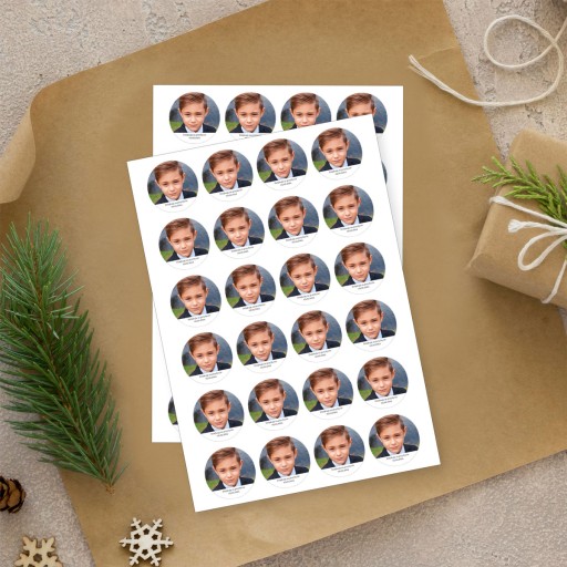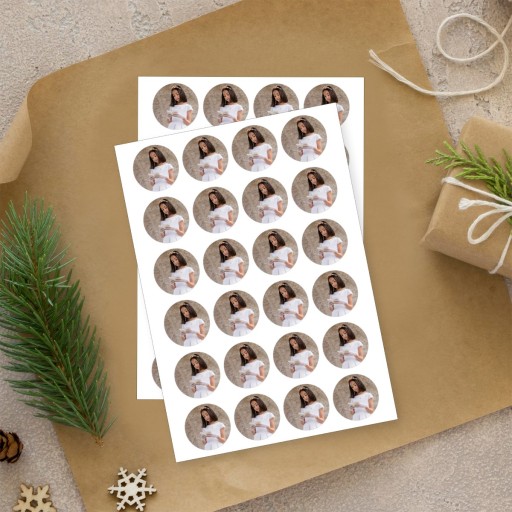 Naklejki z Twoim zdjęciem umieszczone na wygodnym w użyciu arkuszu. Na jednym arkuszu znajdują się 24 papierowe naklejki. W zestawie otrzymasz dwa takie same arkusze - łącznie 48 personalizowanych naklejek.