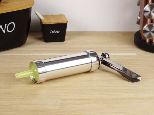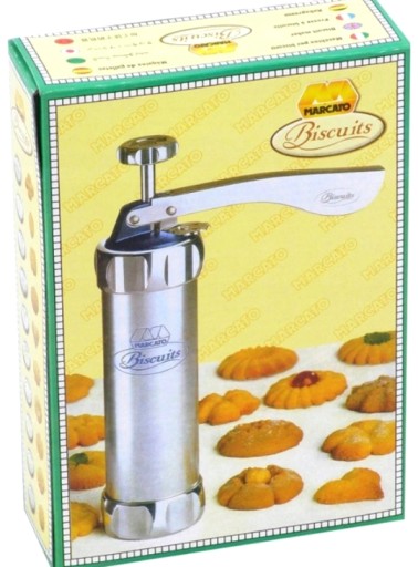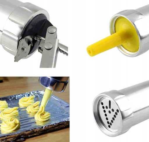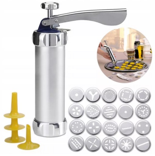 - Metalowa maszynka do wyciskania i dekoracji ciastek jest funkcjonalnym i niezbędnym narzędziem w kuchni. Wykonana z wytrzymałego metalu, daje gwarancję trwałości i solidności.