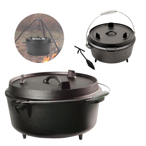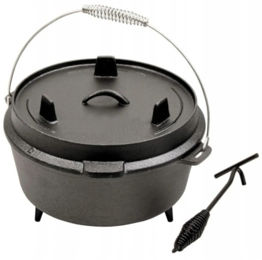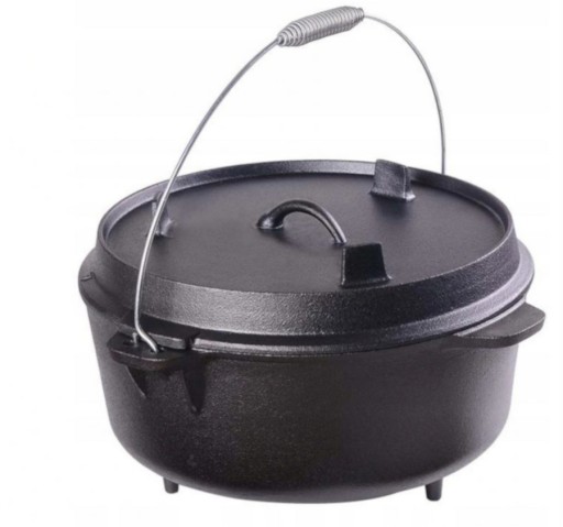 Garnek żeliwny Dutch Oven o pojemności 6 litrów to niezbędne wyposażenie podczas spotkań na świeżym powietrzu.