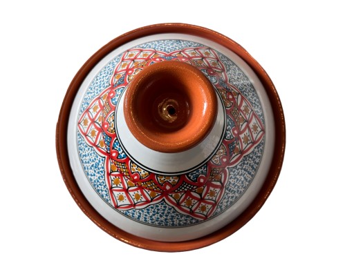Mam do zaoferowania Tadżin, Tagin, Tjine, Tajine - Marokańska potrawa, zarazem ceramiczne naczynie. Wykonane całkowicie ręcznie w marokańskich manufakturach. Tagine to gar gliniany i jego zasadniczym przeznaczeniem jest gotowanie na wolnym ogniu, na co pozwala dziura w pokrywie, dzięki której para swobodnie wydostaje się na zewnątrz. Naczynie można stosować także w piekarniku. Dzięki temu gotowaniu, czasem kilkugodzinnemu, mięso staje się bardzo miękkie i samo rozpływa się w ustach.