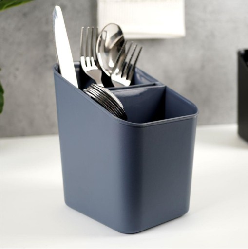- ŁATWY W CZYSZCZENIU - Dzięki specjalnej konstrukcji przybory nie stoją w wodzie, a ta nie spływa na blat kuchenny. Czyszczenie pojemnika jest bardzo wygodne, możemy użytkować go w zmywarce do naczyń.