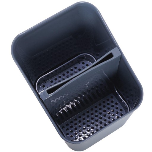 - PRAKTYCZNY - Posiada dwie praktyczne przegródki, które tworzy wyciągany separator mający na spodzie dziurki, które odprowadzają wodę. Po wyciągnięciu wkładu, zyskujemy pojemnik o jednym otworze.