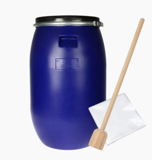 - 1x Beczka plastikowa do kiszenia STERK 85l wraz z obejmą.