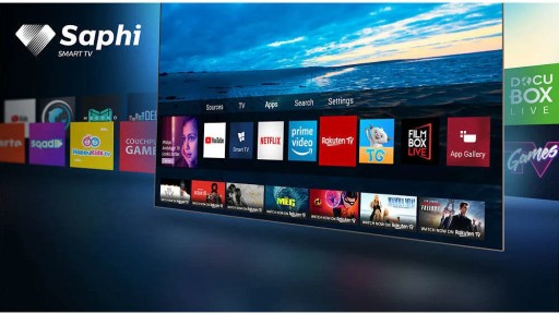 Telewizor PHILIPS PUS7657 z systemem Saphi Smart TV umożliwia dostęp do bogatej oferty aplikacji dostosowanych do potrzeb użytkownika.