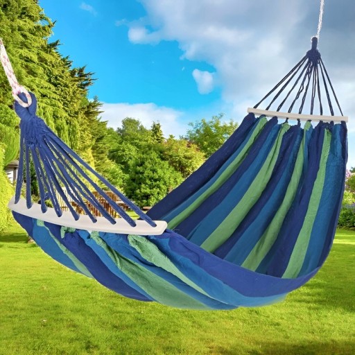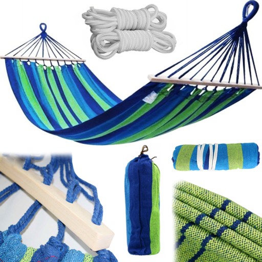 Dzięki temu, że hamak posiada drewniane poprzeczki – rozkłada się jak łóżko.