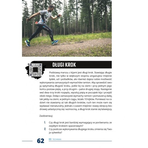 “Nordic walking razem”, autorstwa Aleksandra Wilanowskiego to praktyczny poradnik z dokładnym opisem ćwiczeń nauczających i doskonalących technikę efektywnych marszów z kijami i z gotowymi propozycjami treningów wzmacniających i kondycyjnych. Ten przewodnik to jednak nie tylko sucha teoria. To pięknie wydana przygoda, do której zaprasza nas jeden z pierwszych instruktorów nordic walkingu w Polsce. To spotkania z ludźmi, to inspirujące historie, to porady żywieniowe, wskazówki psychologa sportowego i zdjęcia pięknej przyrody. Książka “Nordic walking razem” zawiera propozycje gotowych treningów technicznych, kondycyjnych oraz uzupełniające zestawy ćwiczeń siłowych i rozciągających do wykonania w domu. Oprócz tego czytelnik może znaleźć tam porady żywieniowe, dziennik treningowy i 12-miesięczny program wyzwań. Książka jest również uzupełniona kodami QR kierującymi do nowych filmów, w których autor obrazowo przedstawił wybrane elementy techniki i zaprezentował ćwiczenia do wykonania na treningach. Dodatkowo poradnik został wzbogacony o nagrania audio, dzięki czemu podczas treningu czytelnik może skorzystać z porad “audio-trenera”. To nowy wymiar literatury sportowej, który może służyć za przykład tego typu poradników.„Cieszę się, że już za chwilę będziemy trenować razem. Jeśli masz jakiekolwiek wątpliwości, to teraz jest ostatni moment, by się wycofać. Jeszcze możesz zrezygnować, bo gdy przewrócisz stronę, będzie za późno – porwie Cię wir aktywności fizycznej, który pochłania kolejne osoby i mnoży szczęśliwych, zdrowych, silnych oraz aktywnych nordic Walkerów w Polsce i na całym świecie.Zapraszam.Aleksander Wilanowski.”