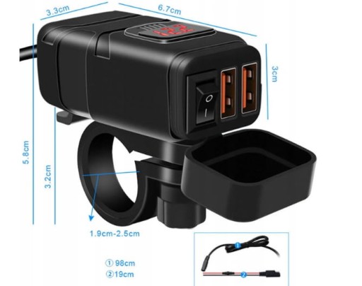 ✅Łatwy montaż: W zestawie znajdują się dwa rodzaje uchwytów: okrągły umożliwiający montaż bezpośrednio do kierownicy oraz płaski umożliwiający montaż pod lusterko lub do powierzchni płaskich. Dzięki temu ładowarkę można zamontować w różnych miejscach, co zwiększa jej wszechstronność. Gniazdo posiada przewód długości 107 cm do podłączenia do akumulatora