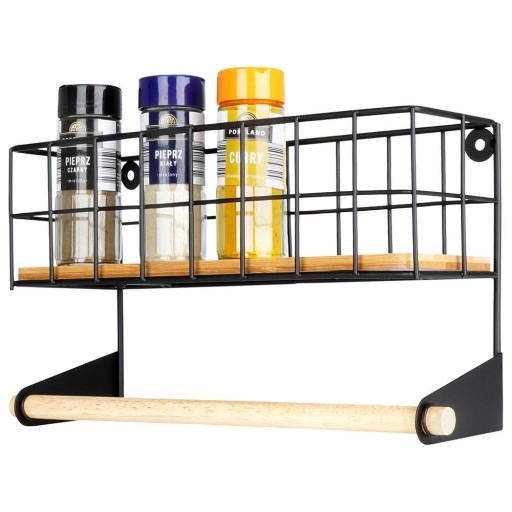 ✅ POMOŻE W ORGANIZACJI - Praktyczna, ścienna półka pomoże w zorganizowaniu miejsca w kuchni, posiada uchwyt na ręcznik papierowy oraz miejsce na przyprawy, artykuły spożywcze czy inne kuchenne gadżety. Wymiar całkowity wynosi 32 x 10 x 18 cm.