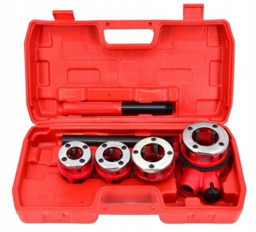 Żeliwna konstrukcja dostosowana do prac przy dużych obciążeniach.Hartowana i malowana proszkowo.4 stalowe noże na głowicy zapewniają czyste i dokładne nacinanie gwintów.Każda głowica posiada cztery otwory do usuwania wiórów.2-częściowy stalowy uchwyt oraz grzechotka z przełącznikiem zmiany kierunku obrotów.Przeznaczona do gwintowania gazowych rur żeliwnych lub rur z blachy czarnej, ocynkowanej.Sprawdzi się w budownictwie, hydraulice i podczas instalacji urządzeń.Zestaw zawiera:4 x narzynki 1/2", 3/4", 1", 1-1/4"1 x grzechotka1 x uchwyt 2-częściowywalizka