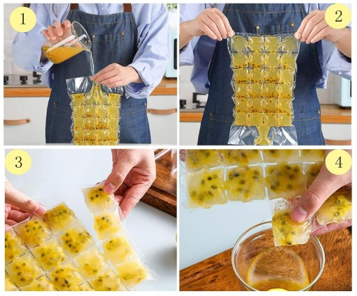 Woreczki wykonane są z wytrzymałej specjalnej folii, która nie przywiera do lodu są znakomitą opcją na stworzenie idealnych kostek lodu - wystarczy wlać przez otwór wodę i odstawić do zamrożenia.