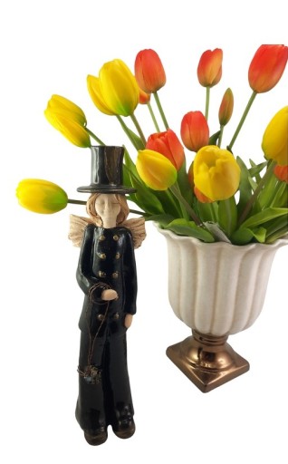 PIĘKNA CERAMICZNA FIGURKA / ANIOŁ KOMINIARZ .