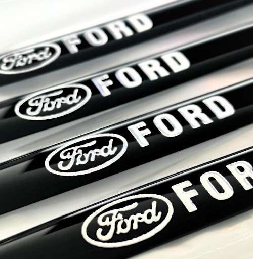 ➡️ Wtopione logo Ford w kolorze srebrnym błyszczącym.