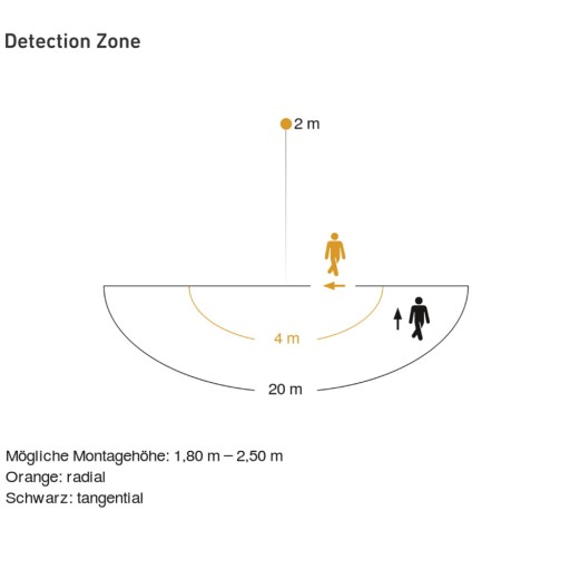 Napięcie zasilania 12 - 22,5 V, 6 mA Rodzaj czujnika ruchu Technika wykrywania podczerwień Interface Dali-2 IPD W zestawie przesłony ograniczające zasięg Zastosowanie wew./zew. Montaż Ściana Zalecana wysokość montażu 2 m Wymiary 95 x 95 x 65 mm Obszar wykrywania 628 m2 Zasięg wykrywania 20 m Kąt wykrywania 180 ° Kąt rozwarcia 90 ° Ustawienie czasu 5 sek - 15 min Czułość progowa jasności 2 - 1000 lx Max. zasięg na wprost 4 m Max. zasięg boczny 20 m Kolor biały Stopień ochrony (IP) IP54 Długość 124 mm Szerokość 160 mm Wysokość 90 mm Gwarancja 5 lat Pozostałe DALI adresowalne