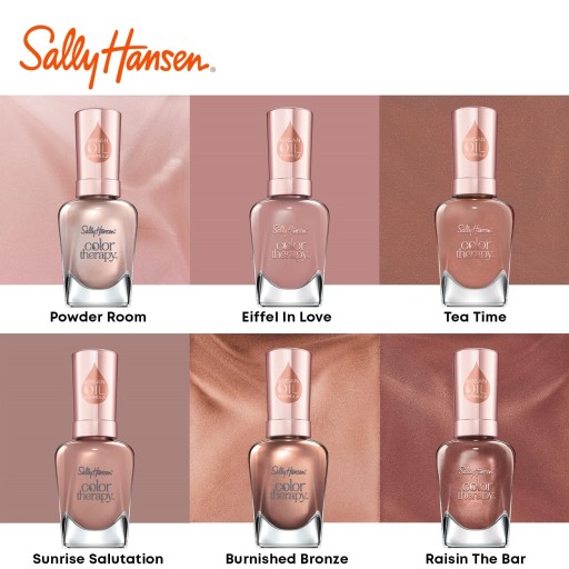 Opis: Nowa linia Color Therapy to prawdziwa innowacja. Lakiery łączą właściwości pielęgnacyjne z olśniewającym, nasyconym kolorem, zaspokajając główną potrzebę współczesnych kobiet: odżywanie paznokci przy ograniczonym czasie na pielęgnację. Formuła lakierów została wzbogacona dobroczynnymi olejkami: arganowym, z acai oraz z wiesiołka, które nawilżają i wzmacniają paznokcie. Color Therapy to również szeroka paleta kolorystyczna. Kolekcja zawiera zarówno delikatne tonacje nude jak też bardziej odważne, soczyste kolory, które zachwycają paznokcie swoim blaskiem aż do 10 dni.