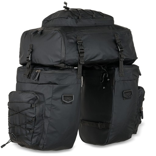 - Konstrukcja składająca się z trzech części: dwie boczne sakwy i jedna górna