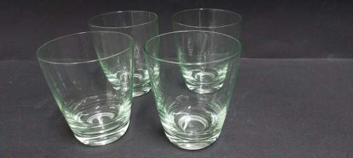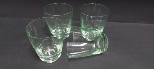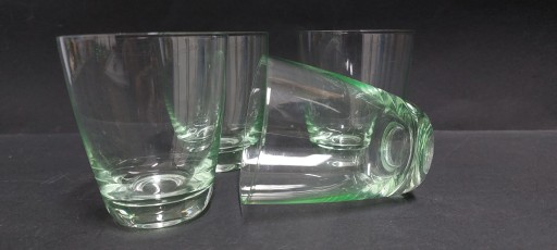 Stary zestaw szklaneczek w odcieniu jasno zielonego szkła.