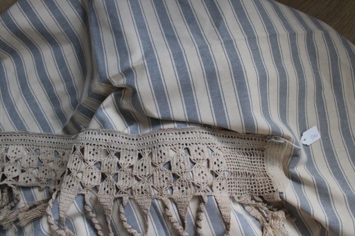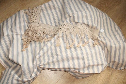 KUPON TKANINY BAWEŁNIANEJ W PASY 240 X 150 I KORONKOWY LAMBREKIN