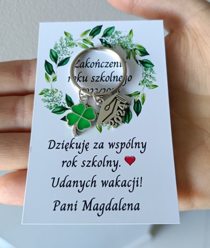 - sztywną karteczkę o wymiarach 6x9cm (bardzo dobry wydruk na grubym papierze ozdobnym 260g) - karteczka klasyczna ze zdjęcia głównego lub z twoim tekstem - po zakupie go podaj, (np. Powodzenia na maturze! Wychowawca Joanna Zielińska, Powodzenia na egzaminie, Zakończenie roku szkolnego, Dziękuję za wspólne lata pracy, Odejście na emeryturę, itp.)