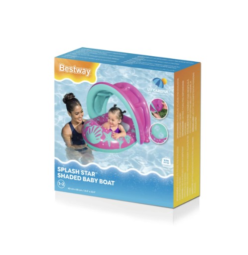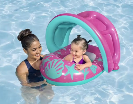 Wygodne siedzisko, stabilna konstrukcja oraz ochronny daszek sprawią, że zarówno Ty, jak i Twoje dziecko, będziecie mogli cieszyć się bezpiecznymi i radosnymi chwilami w wodzie.