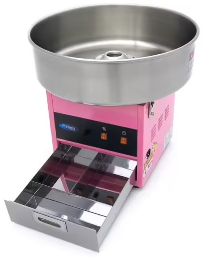 o średnicy 52 cm, dzięki czemu idealnie nadaje się do produkcji pysznej waty cukrowej w różnych kolorach. Dzięki możliwości szybkiego nagrzewania można błyskawicznie rozpocząć kręcenie waty cukrowej. W zaledwie 30 sekund można przygotować pyszną watę cukrową.