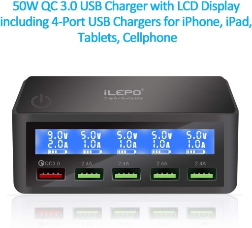 iLEPO 818 USB-зарядное устройство, 5-портовая станция QC3.0