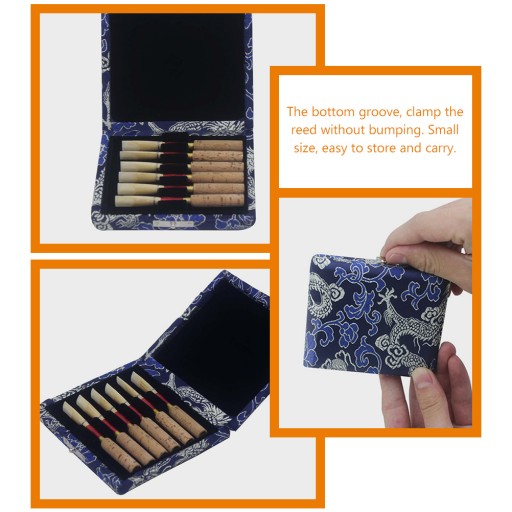 Jest to schowek na trzcinę obojową, który jest produkowany z tkaniny i drewna, trwały i wystarczająco praktyczny w użyciu. Z tym pudełkiem do przechowywania nie będziesz się martwić, że stroiki do oboju zostaną uszkodzone lub zgubione.