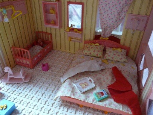 Klocki używane, z biegiem lat niektóre elementy zmieniły kolor. Lalki z pełną artykulacją.