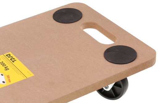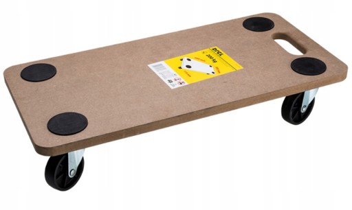 - Szczegółowe informacje na temat produktu:Wymiary: 600 x 300 x 115mm. Wysokość całkowita: 115 mm. Ø kółek: 75 mm. Udźwig (maks.): 200 kg. Materiał płyty: MDF. Materiał rolek: polipropylen (PP).