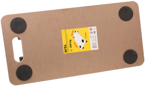 600 x 300 x 115mm. Wysokość całkowita: 115 mm. Ø kółek: 75 mm. Udźwig (maks.): 200 kg. Materiał płyty: MDF. Materiał rolek: polipropylen (PP).