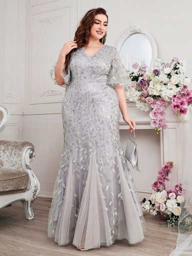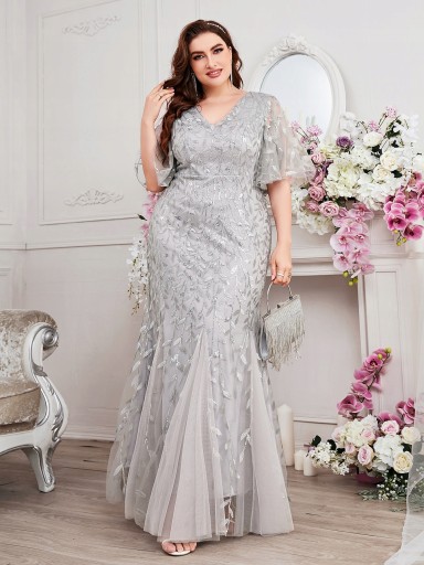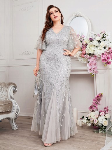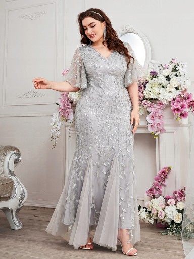 SUKIENKA CEKINOWA SYRENA W ROŚLINNY WZÓR MAXI SZARA SHEIN 2XL