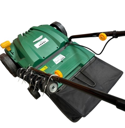 Pojedyncze sprężyste zęby do aeracji: Rozczesują trawę oraz usuwają mech i darń 16 noży do wertykulacji: Rozcina glebę, zapewniając dostęp powietrza i substancji odżywczych, co wspomaga zdrowy wzrost roślin, Centralna regulacja wysokości, Regulowany zakres wysokości roboczej.Składany uchwyt ułatwiający przechowywanie, Worek 28 l